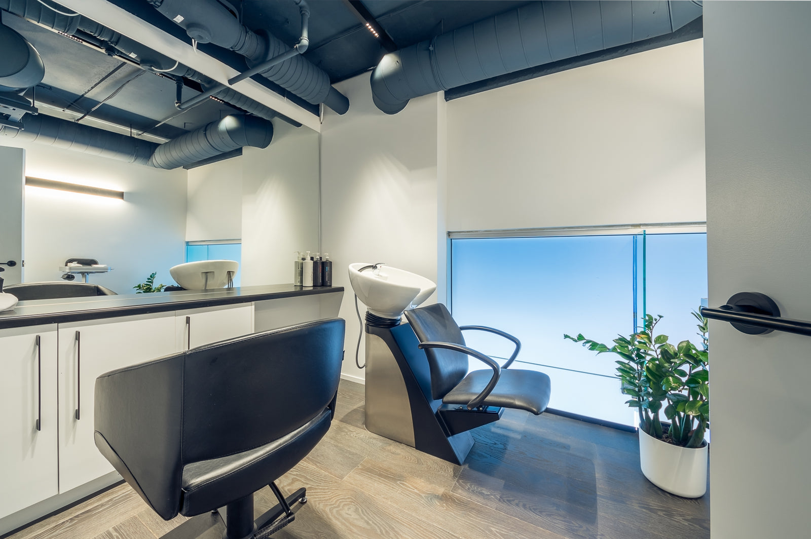 Located in the heart of the city at Chancery Square, our salon is a reflection of our philosophy—sophisticated, modern, and welcoming. Designed in collaboration with Alaska Interiors, the space is minimalistic yet warm, with beautiful long lines and an open, relaxing atmosphere. For those who prefer a little more discretion, we also offer two private rooms.